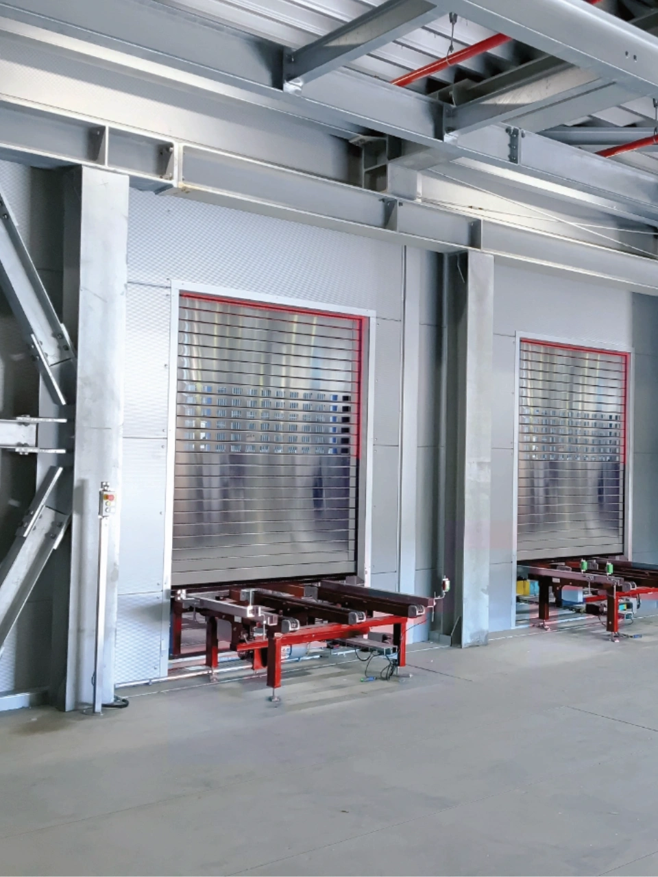 Kompaktes Schnelllauf-Rolltor für den Innenbereich, ideal zur Trennung von Funktionsbereichen mit hoher Öffnungsfrequenz und wenig Platzbedarf.